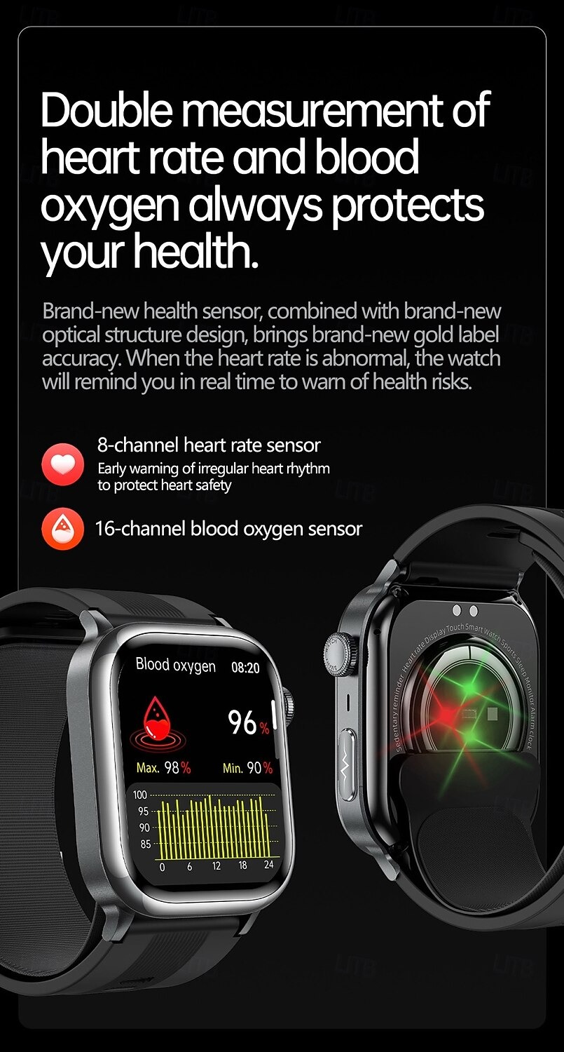 YearPeak BioTracker Smartwatch - 2.06" AMOLED, Dual ECG+PPG Sensor, VO2 Max Analysis, 50M Waterproof