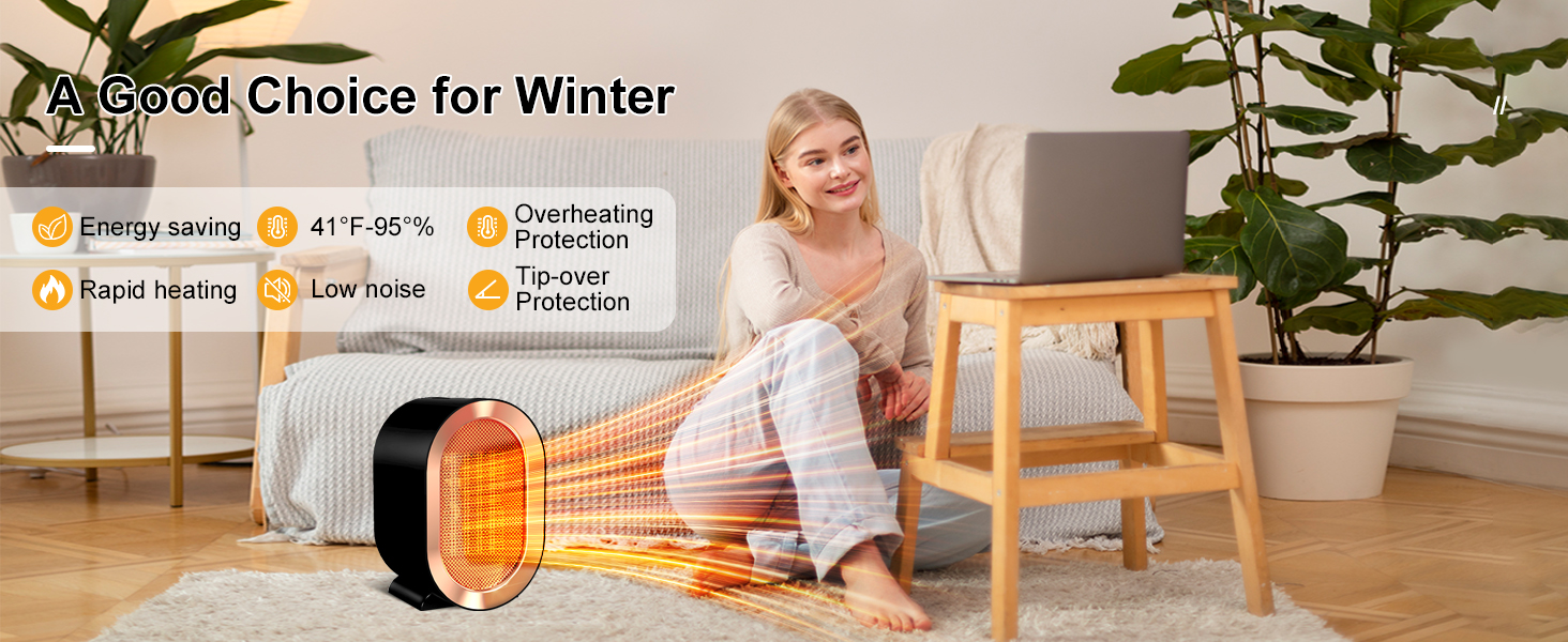YearPeak Personal Ceramic Space Heater - 1200W Fast Quiet Desk Heater
