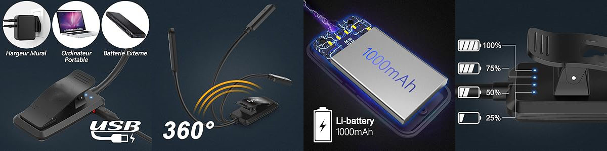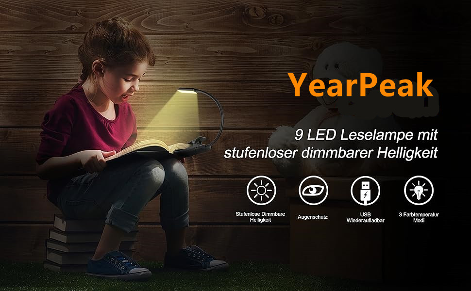YearPeak Clip-On Reading Light - 3-Color Dimmable USB Lamp