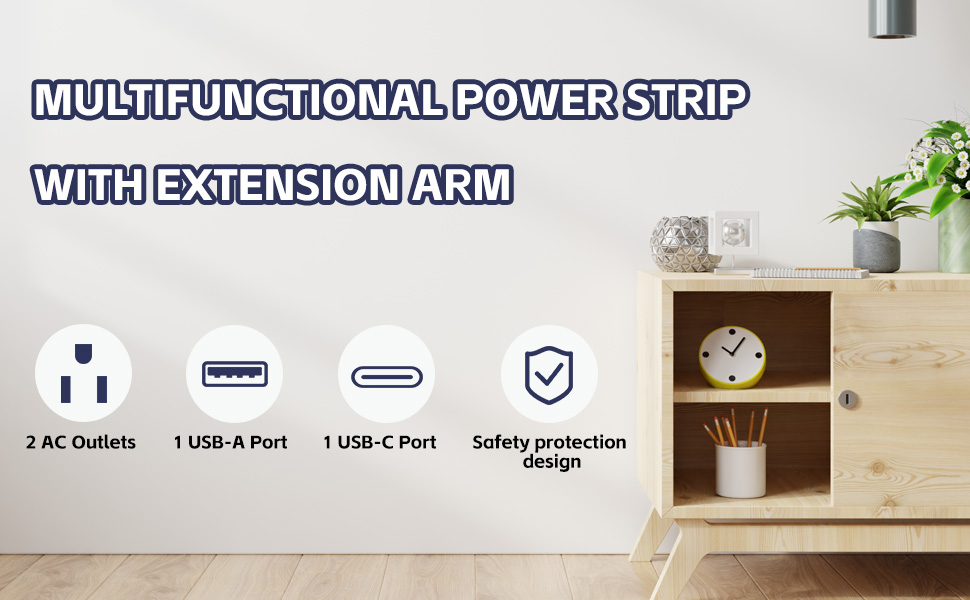 YearPeak Extendable Rotating Outlet & Power Strip with USB Ports