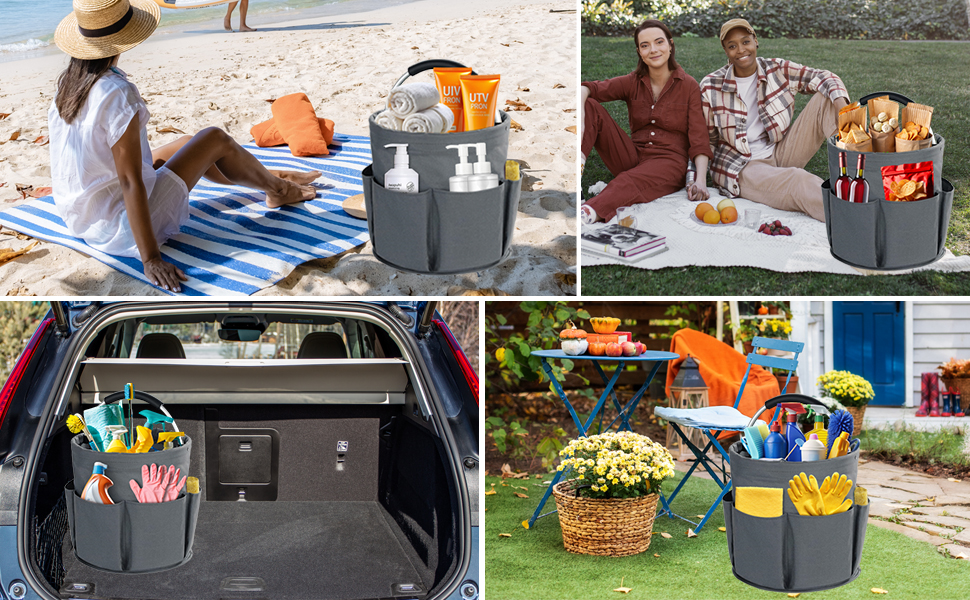 YearPeak 17L Foldable Cleaning Caddy with Pockets - Portable Storage Basket Organizer
